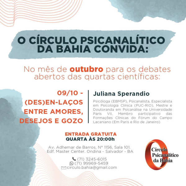 QUARTAS CIENTÍFICAS As reuniões das quartas científicas são voltadas para os membros e convidados, para debaterem sobre temas que são objeto de estudo da psicanálise